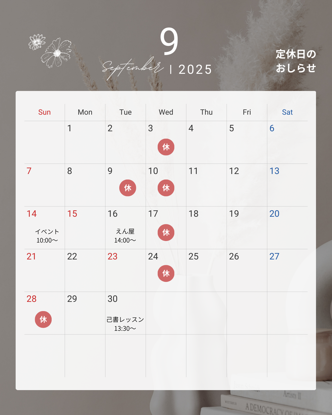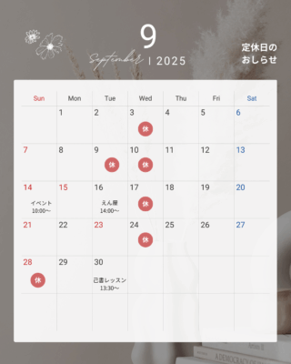 モノトーン シンプル 営業日 予約状況 カレンダー 2025年 7月 8月 Instagram投稿 (7)