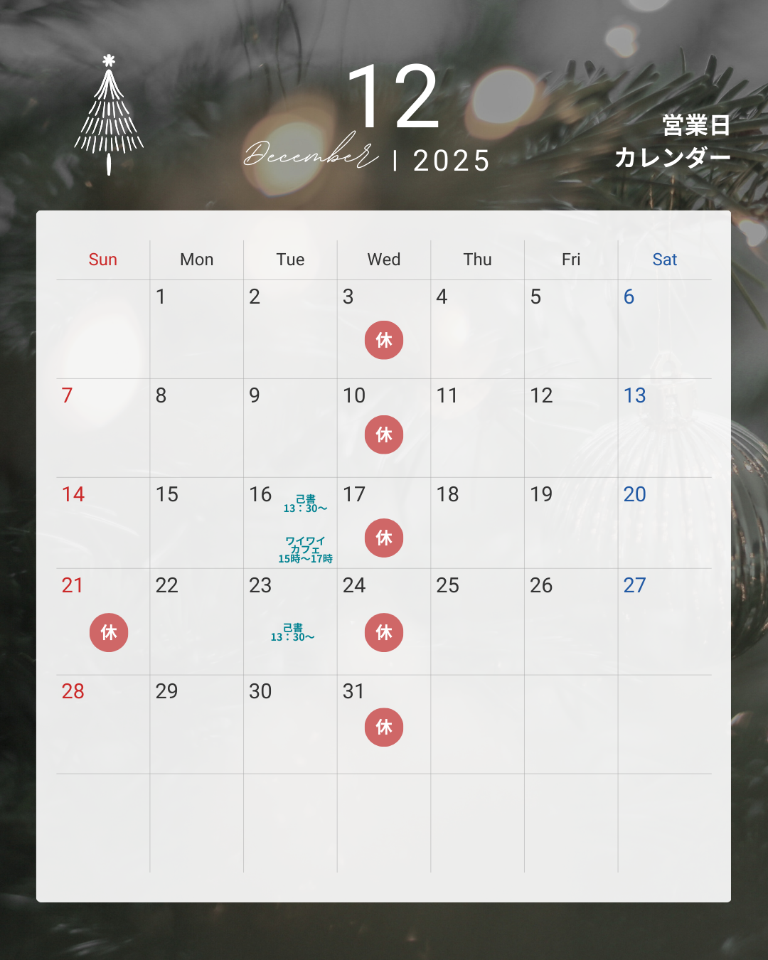 2025年12月定休日お知らせ